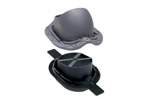 MUOTOKATE 2K проходной элемент для металлочерепицы с профилем Monterrey (ширина волны ≈ 183,3 мм, длина профиля min 350 мм, высота профиля ≈ 39 мм). В комплект входит двухкомпонентный 2K-уплотнитель гидрозатвора, гарантирующий полную герметичность прохода через гидрозащитную пленку.
