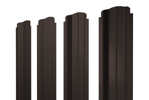 Описание товара: "Штакетник П-образный B фигурный 0,45 PE RR 32 темно-коричневый"