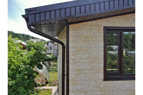 Водосток Grand Line PE 125×90 обладает водопропускной способностью на 25% выше, чем у аналогов с полукруглым желобом. Увеличенная глубина желоба обеспечивает такую производительность. Благодаря этому система собирает осадки с большей площади кровли, что снижает потребность в дополнительных водосточных трубах и сопутствующих элементах.
